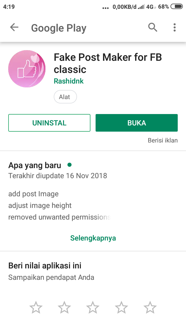 1. Download aplikasi berikut di Playstore atau di lainnya bernama "Fak Post Maker for FB"