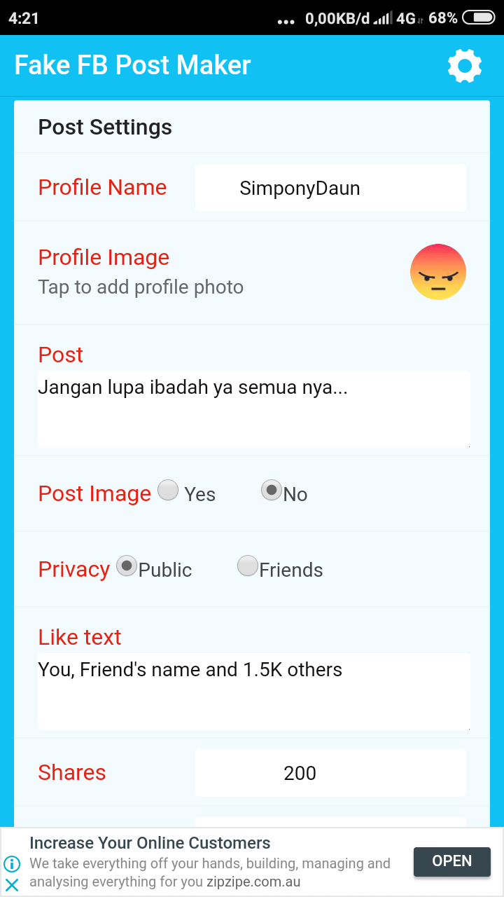 0 Response to "Cara Membuat Status / Postingan FB Palsu di Android"